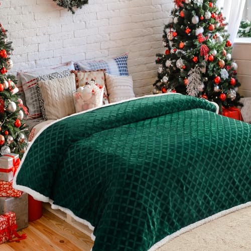 inhand Sherpa Throw Blanket Soft Christmas Throw Blanket Green Warm Blankets and Throws Cozy Fluffy Reversible Flannel Fleece Blanket for Couch Sofa Bed Lap Large Plush Fuzzy Brushed Blanket(50”x60”)